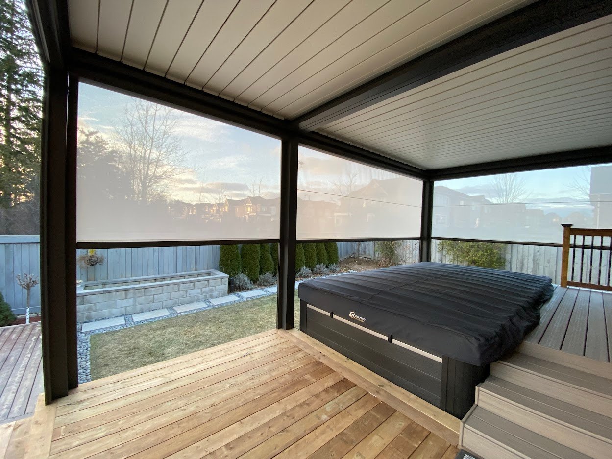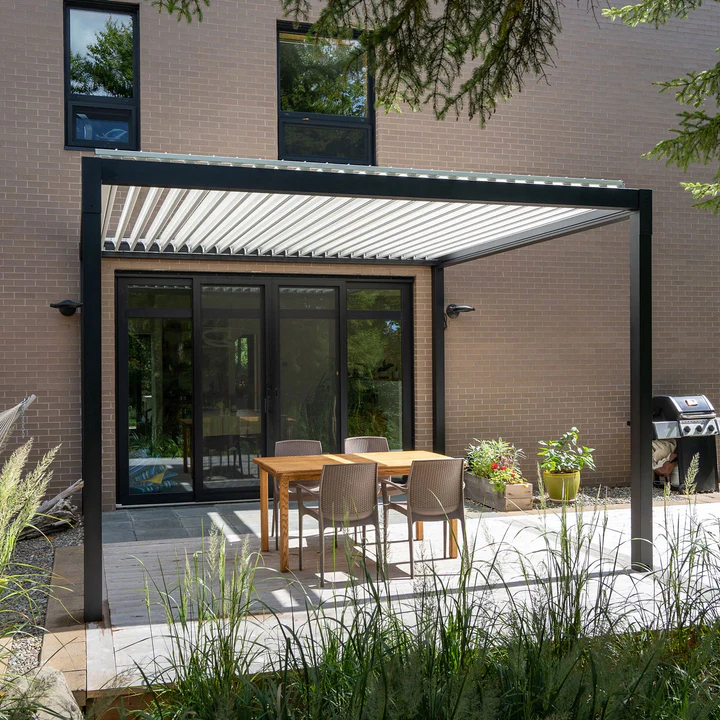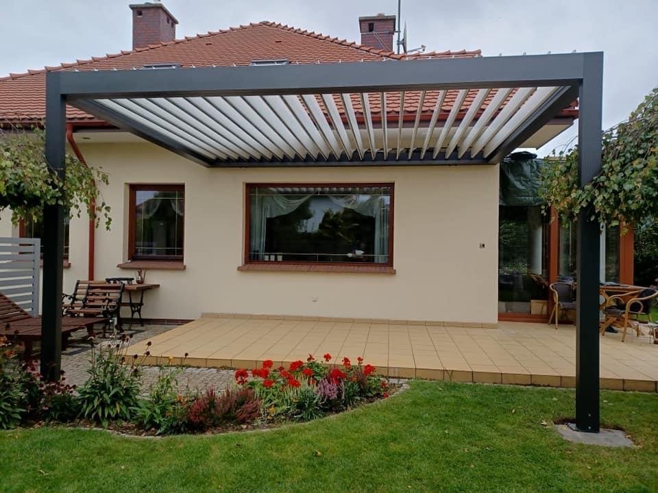 The louvers are equipped with side drainage systems. Even if they are opened after a heavy rain, the water will flow from the blades into the tank without drip.